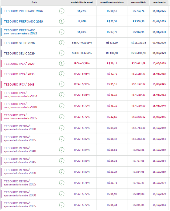 Confira os preços e as taxas dos títulos públicos disponíveis para compra no Tesouro Direto na tarde desta terça-feira (16):